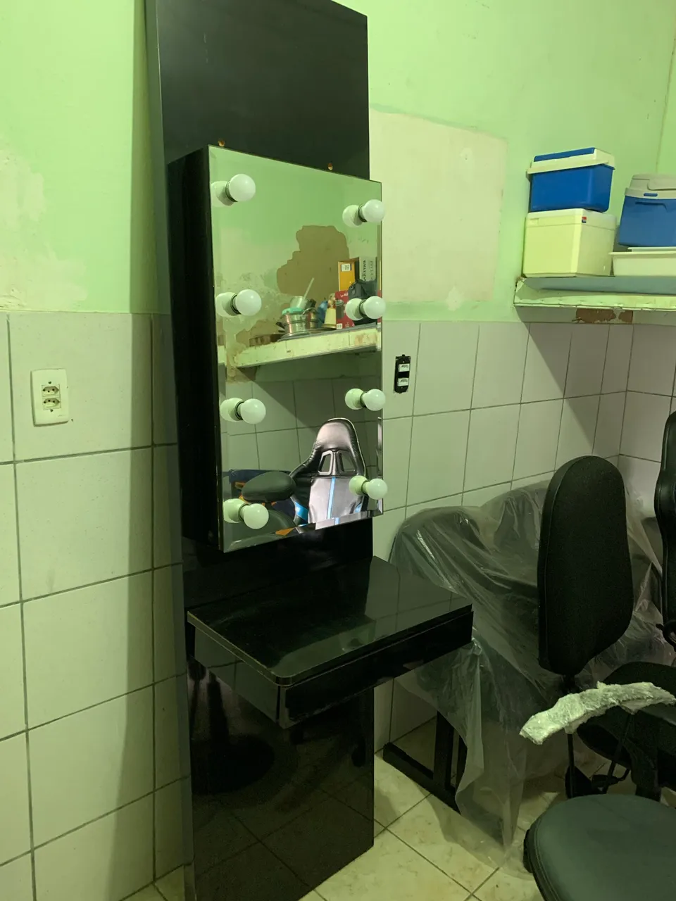 Linda penteadeira com design moderno e elegante! Perfeita para organizar seus cosméticos e maquiagens. Possui espelho com iluminação embutida para facilitar a sua rotina de beleza. Acompanha uma cadeira confortável e reformada. Ideal para transformar seu espaço!