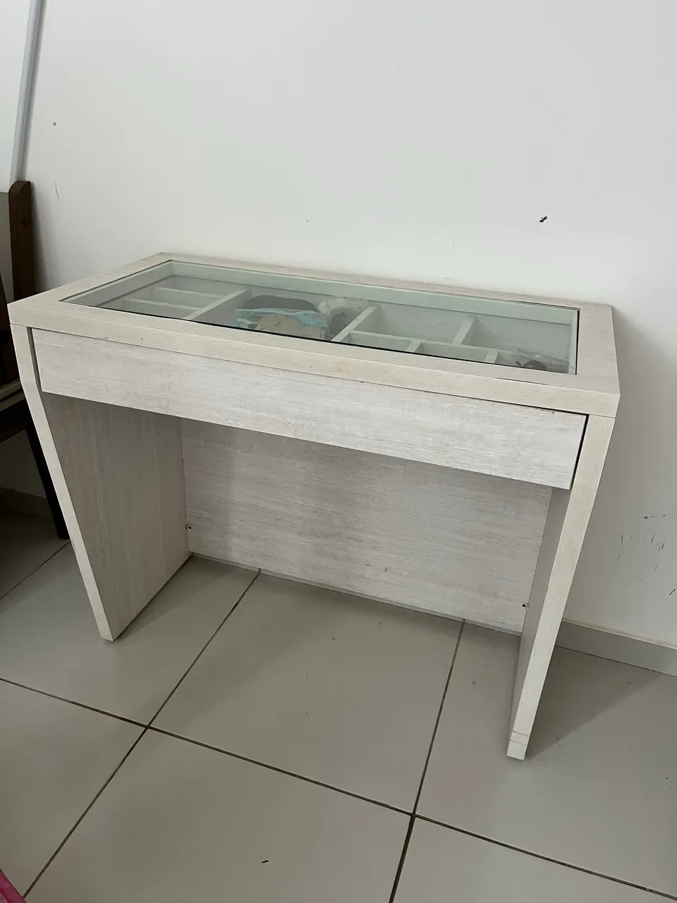 Vendo penteadeira com design moderno e elegante com topo de vidro. Perfeita para organizar seus cosméticos e itens de beleza! Sem marcas de uso.