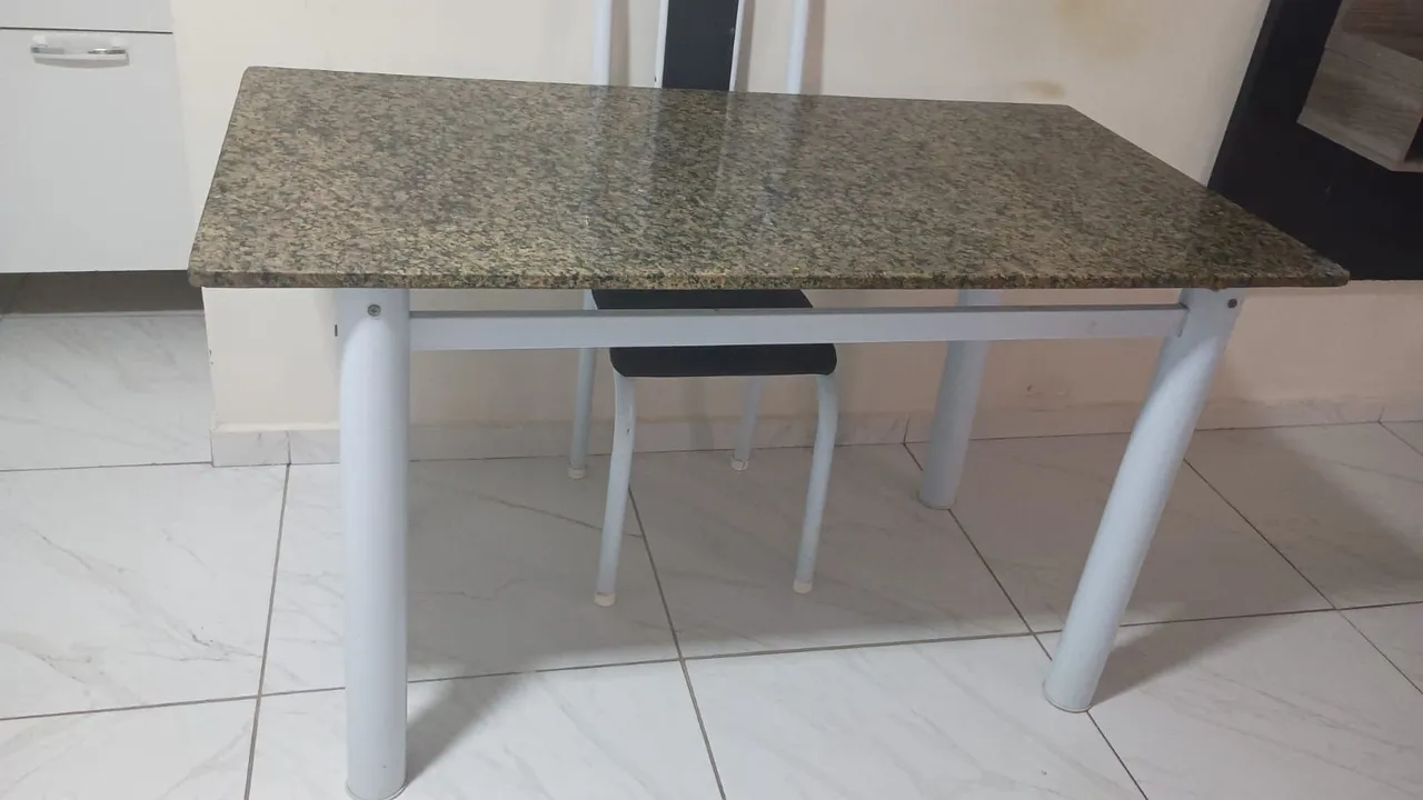 Mesa de marmore. Elas são 6 cadeiras, porém só possui 5. Aceito troca emesa de 4 cadeiras do meu agrado.