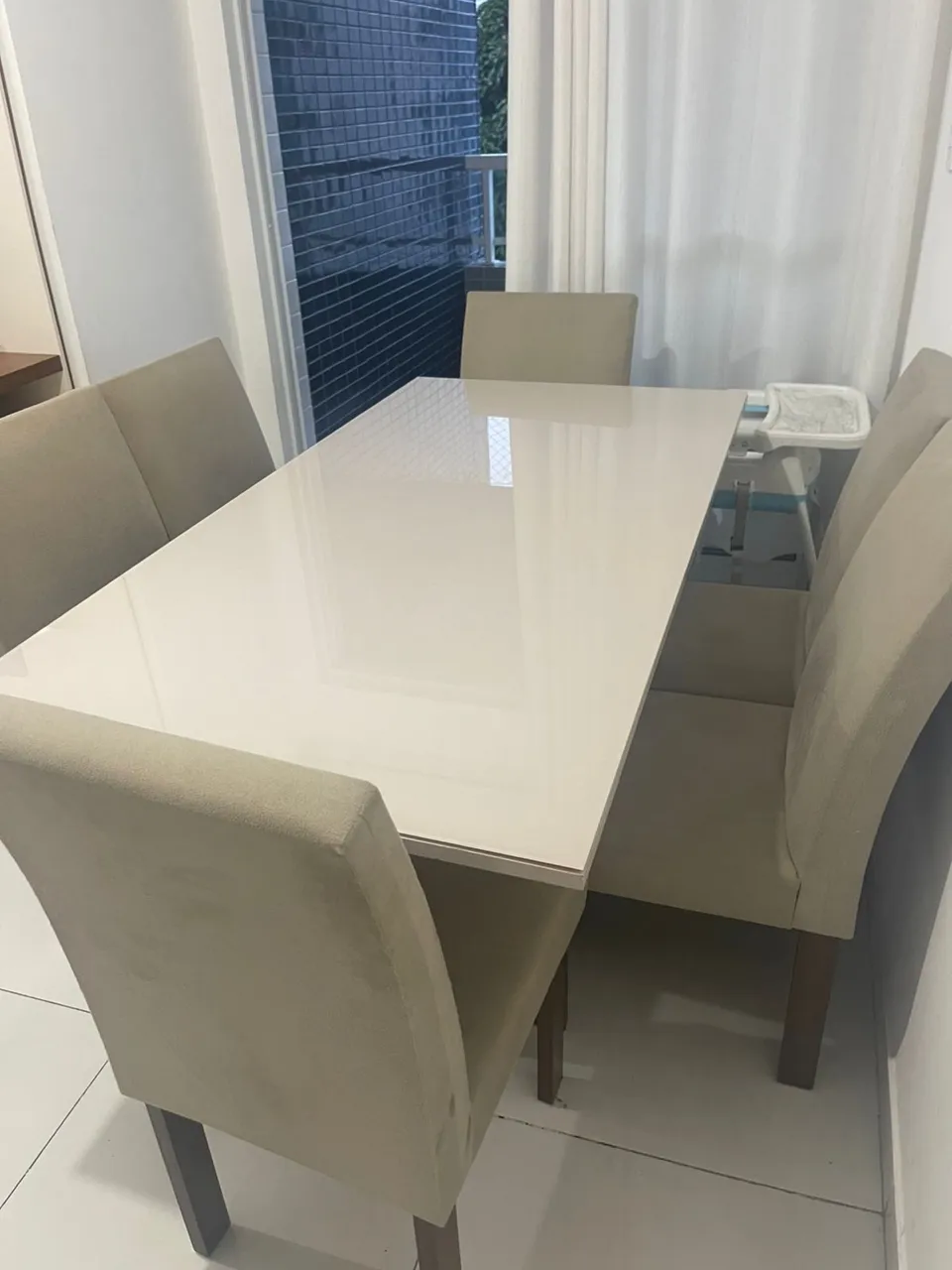 Linda mesa para 6 lugares com tampo de vidro laqueado em perfeito estado ideal para sua sala de jantar. Interessados chamar no WhatsApp: 83 ... ver número