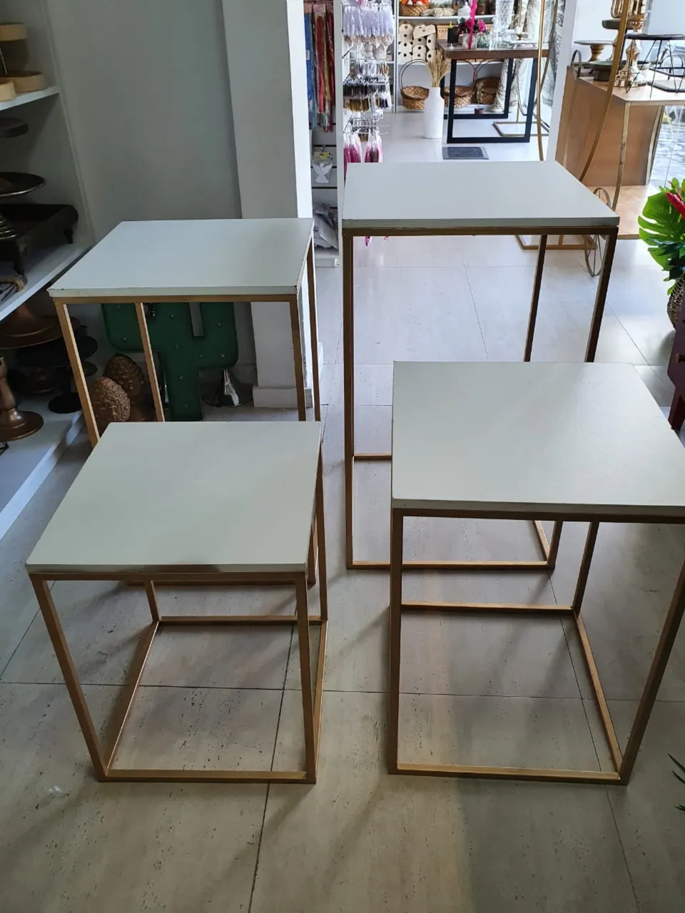 Conjunto de mesas perfeitas para festas e eventos! Design moderno e elegante, ideais para compor a decoração e valorizar seus produtos ou bolos. Leves e fáceis de montar, são a escolha ideal para quem busca praticidade e beleza.