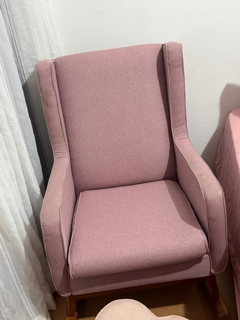 Linda poltrona de balanço na cor rosa da marca ABSTRATTO referência em qualidade em artigos para o quarto do seu bebê , ideal para decorar e te ajudar nas mais diversas situações com seu bebê!!! Acompanha puff, ambos em estado de novo.