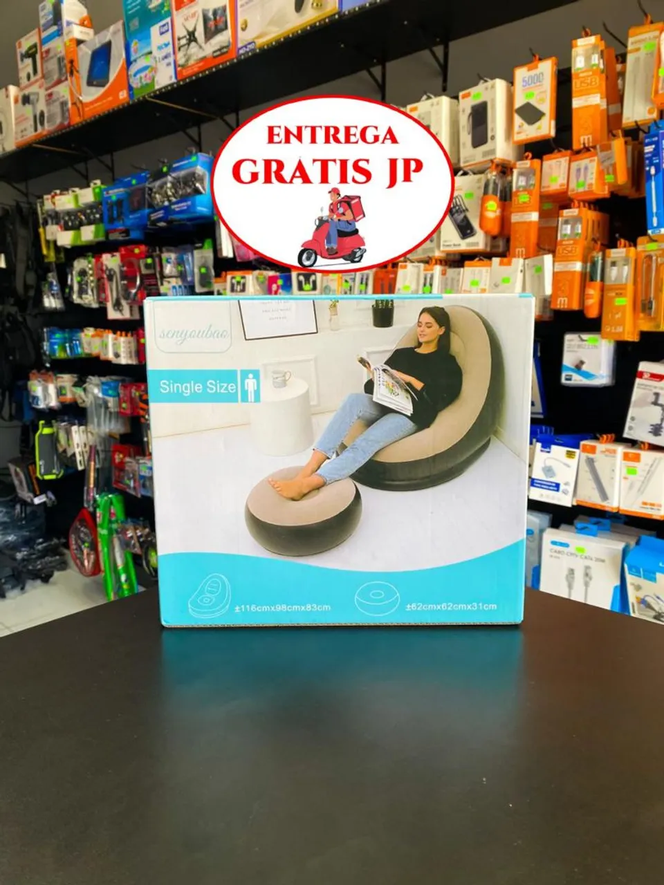 Poltrona inflável ultra lounge com pufe, ideal para relaxar.