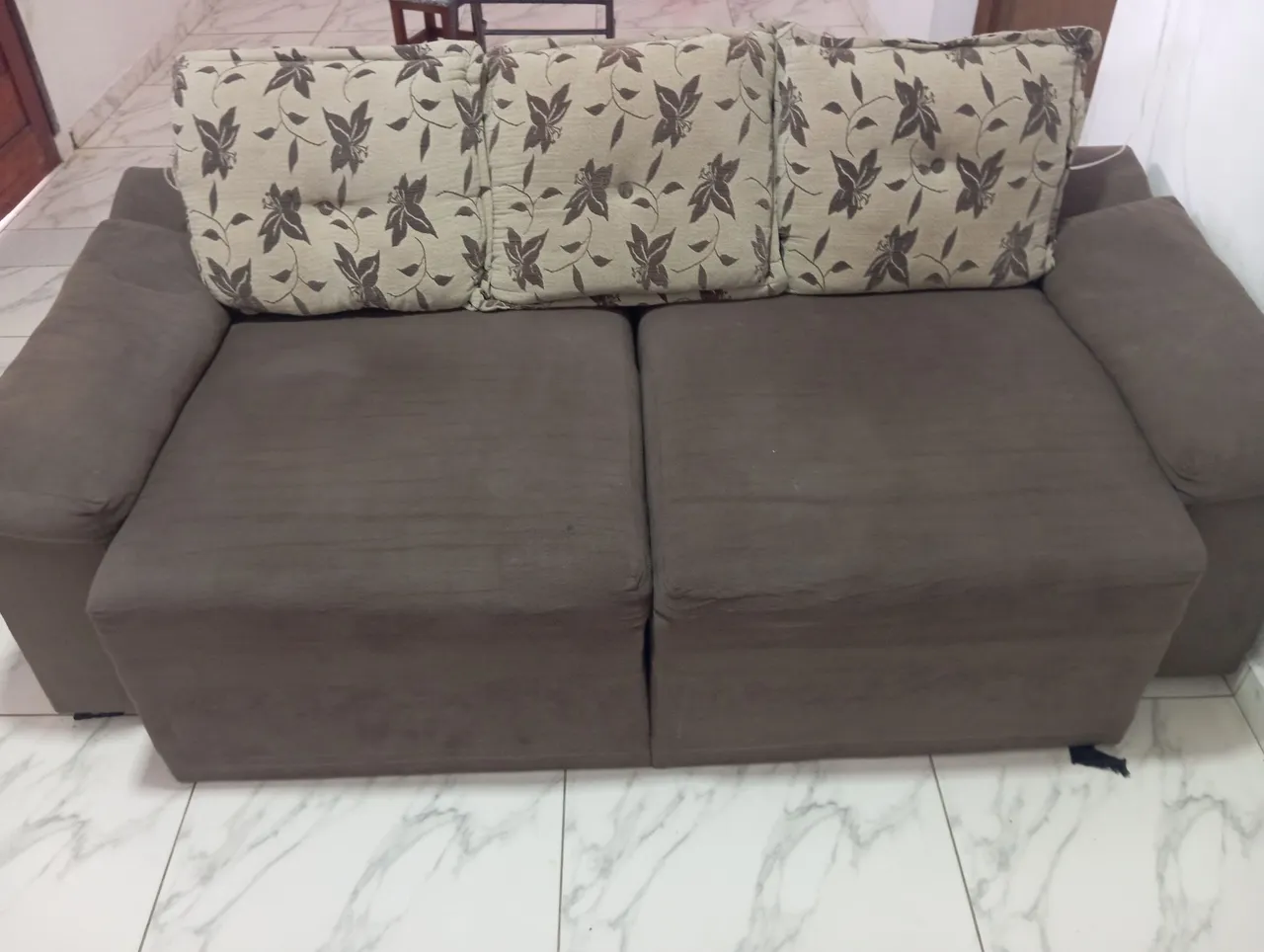 Sofá confortável e espaçoso, ideal para relaxar e receber visitas. Perfeito para sua sala!