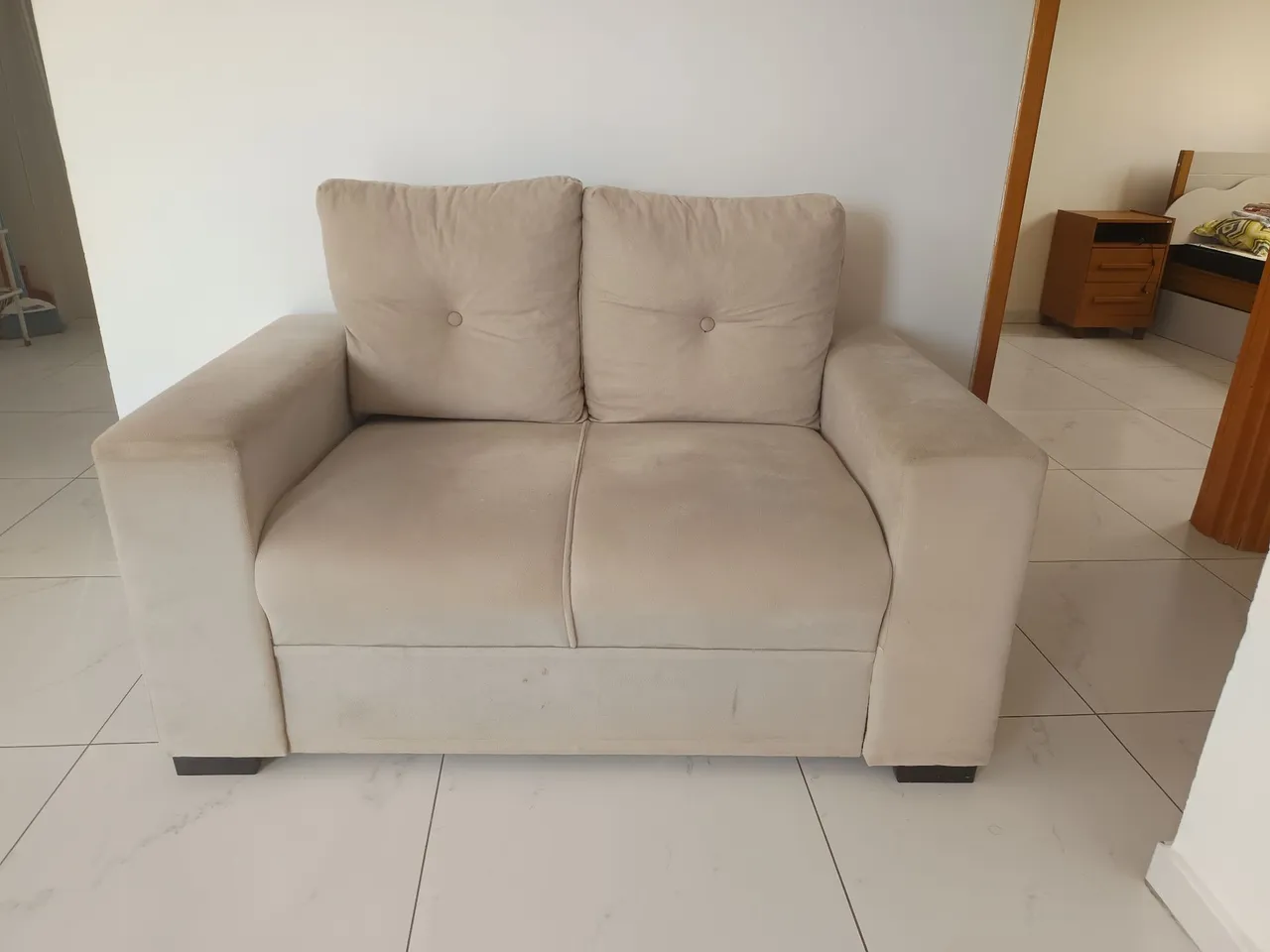 Sofá 2 lugares. Um pouco sujo mas o estofado está em perfeito estado.