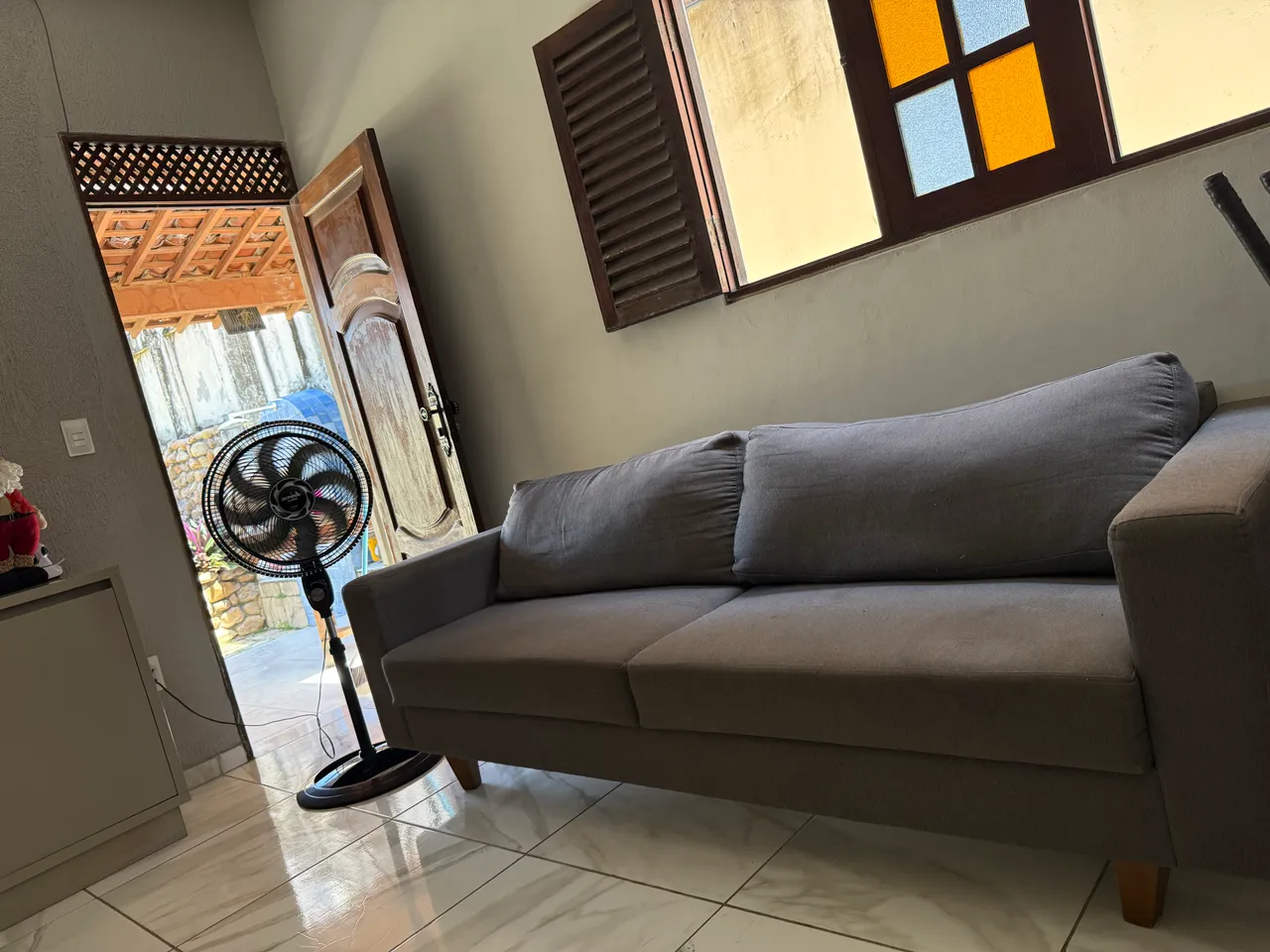 Sofá cinza perfeito para sua sala! Conforto e elegância em um só móvel, ideal para relaxar e receber convidados.