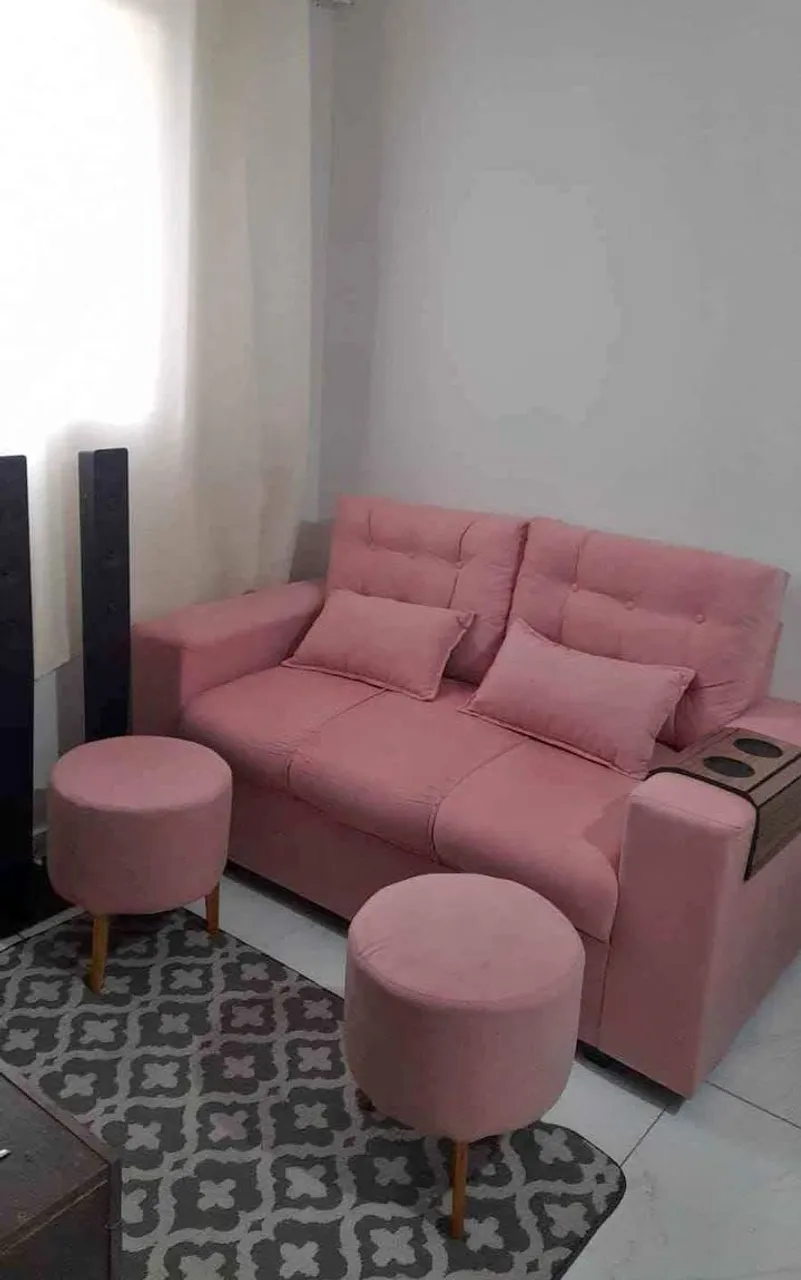 Transforme sua sala com este sofá elegante e confortável, acompanhado de puffs charmosos! Perfeito para relaxar e receber convidados com estilo.