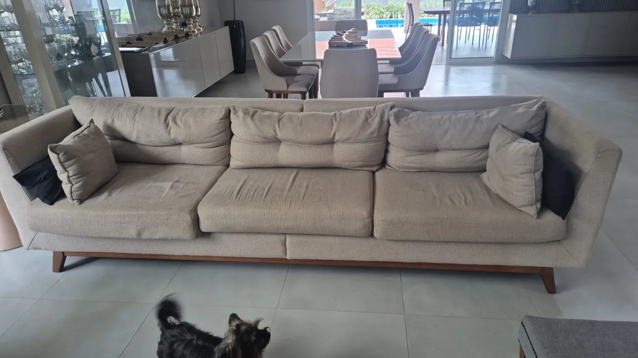 Desfrute do conforto e elegância com este sofá que combina design moderno e sofisticação. Perfeito para transformar sua sala de estar em um ambiente acolhedor e charmoso. Detalhes que elevam o seu espaço!