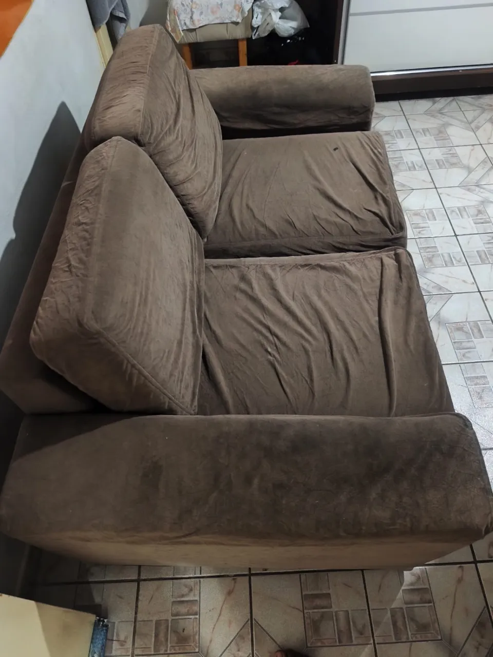 Sofá marrom espaçoso e confortável para sua sala! Perfeito para relaxar e receber visitas com estilo.