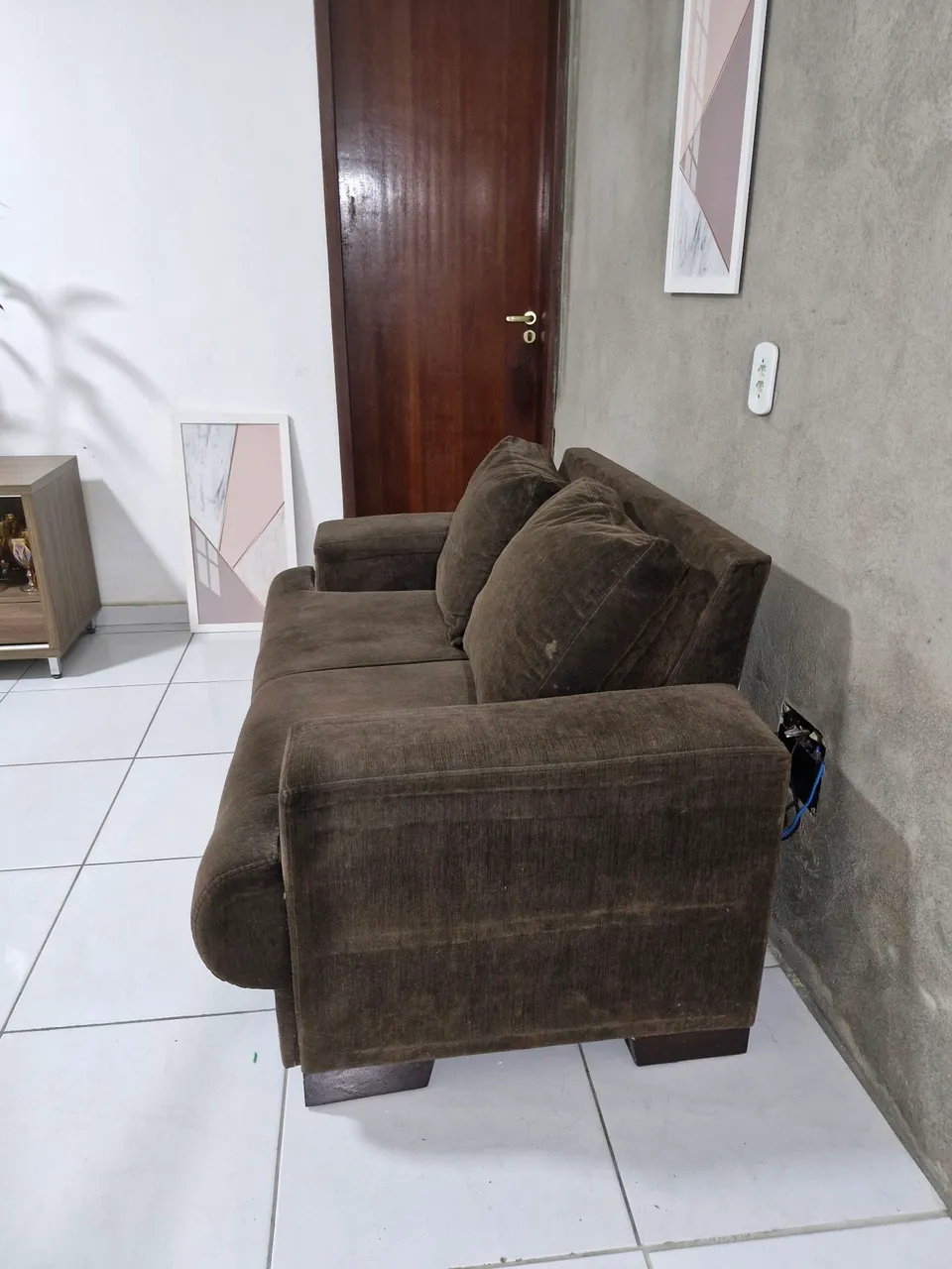 Sofá marrom com design moderno e almofadas macias. Perfeito para relaxar e decorar sua sala com estilo e conforto. Ideal para quem busca um ambiente acolhedor.zap 9872... ver número 2 lugares