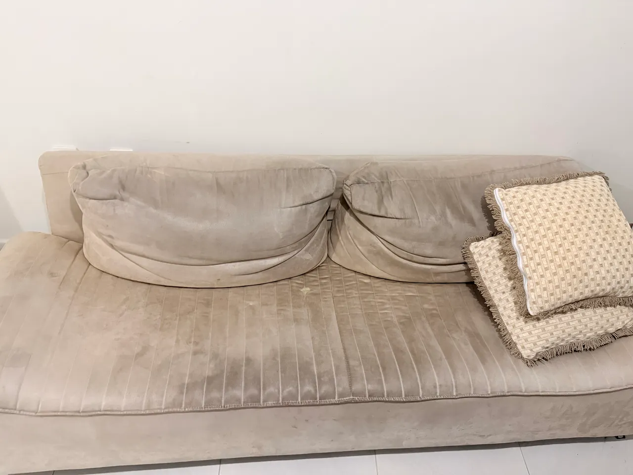 Sofá estilo namoradeira de 3 lugares + 2 almofadas. Sofá sem rasgões, com algumas sujeiras superficiais devido ao tempo de uso.