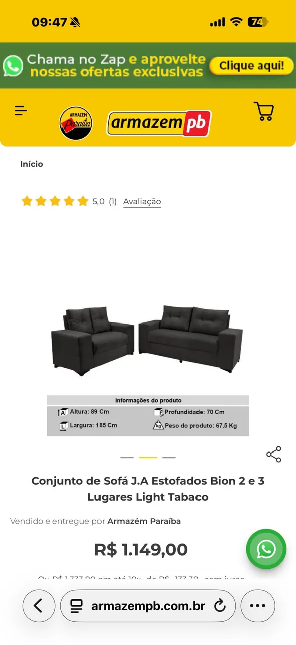 Desfrute do conforto e elegância com o Conjunto de Sofá Com design moderno e almofadas macias, ele transforma sua sala em um ambiente aconchegante e convidativo. Perfeito para relaxar e receber visitas.