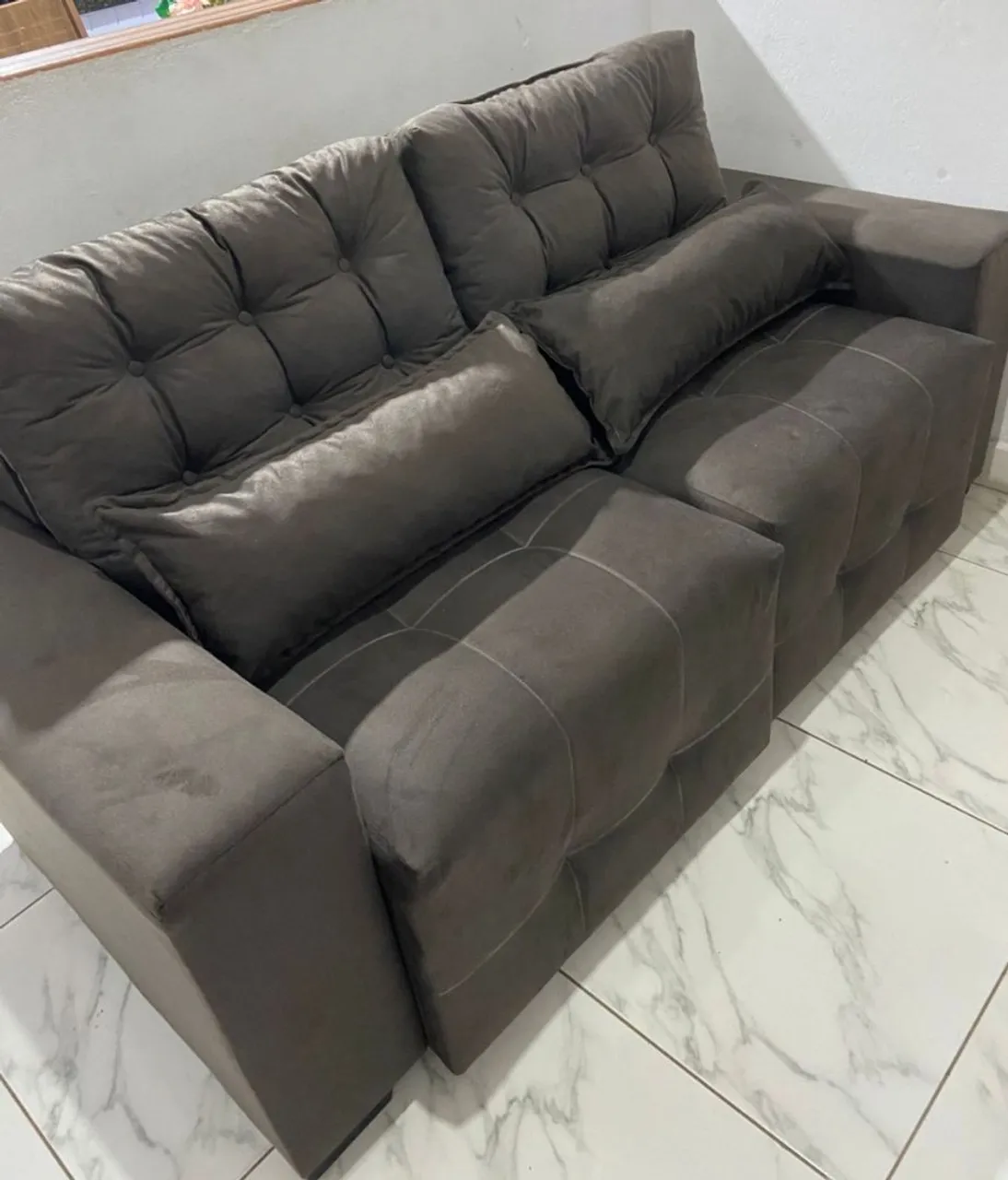 Desfrute do conforto e elegância com este sofá retrátil, perfeito para relaxar. Acompanha duas almofadas para um toque extra de aconchego. Ideal para sua sala!