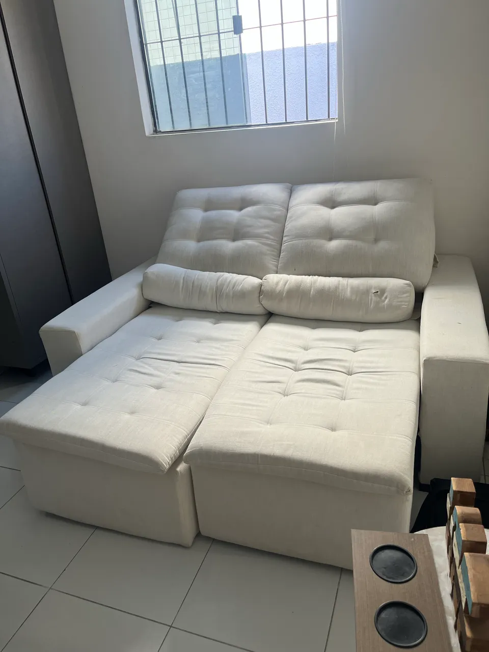 Desfrute do conforto e elegância com este sofá retrátil de linho branco. Perfeito para relaxar e transformar sua sala em um ambiente acolhedor e sofisticado.