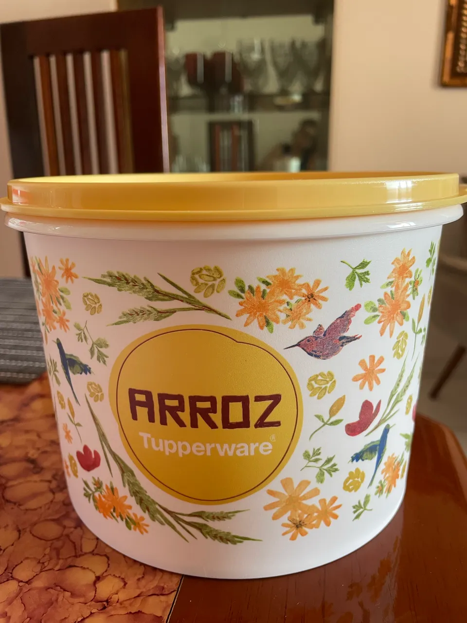 Pote Tupperware para armazenar arroz, perfeito para manter seus alimentos frescos e organizados. Design moderno e funcional, ideal para sua cozinha!