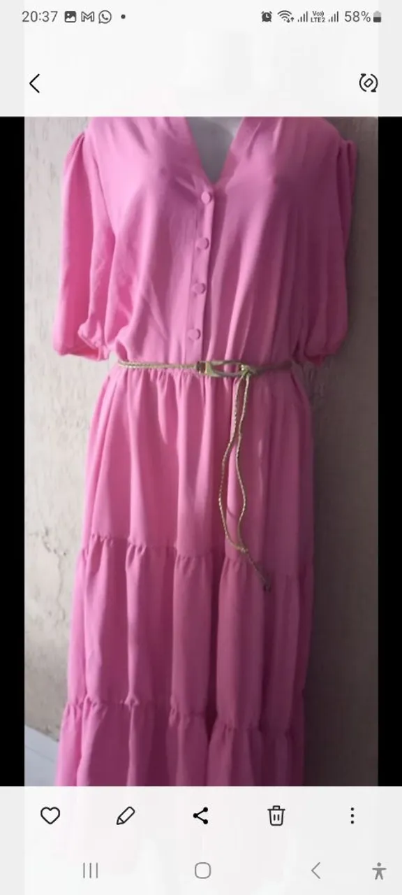 Vestido longo rosa vibrante, perfeito para um visual elegante e charmoso. Detalhes que encantam e te fazem brilhar!