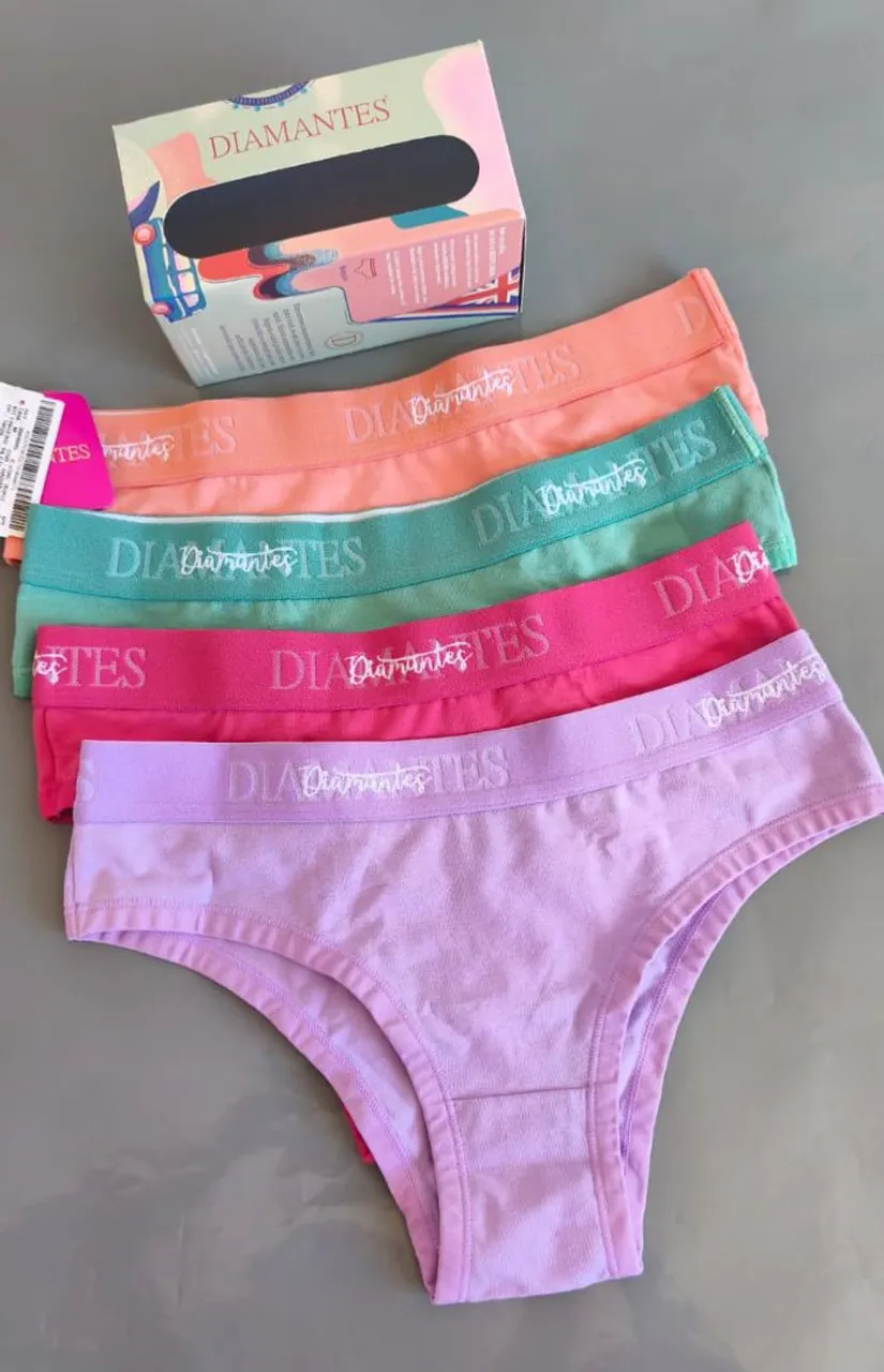 Kit com 4 calcinhas Diamantes de algodão, perfeitas para o dia a dia. Conforto e estilo em diversas cores para você escolher.