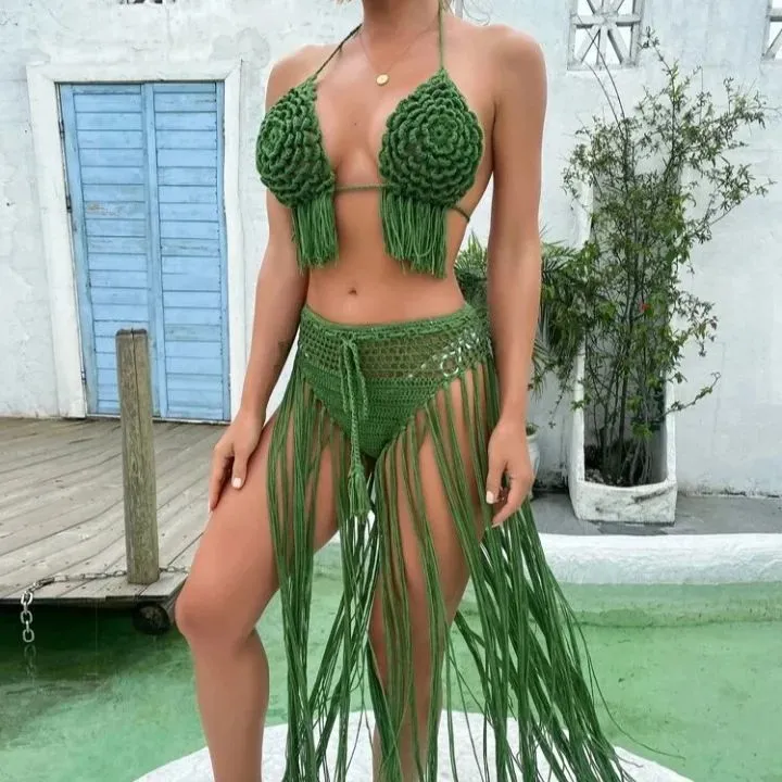 Desfrute do verão com este conjunto de crochê artesanal! Perfeito para a praia ou piscina, este conjunto exclusivo combina estilo e conforto em um design único. Sinta-se confiante e elegante sob o sol com este conjunto deslumbrante.