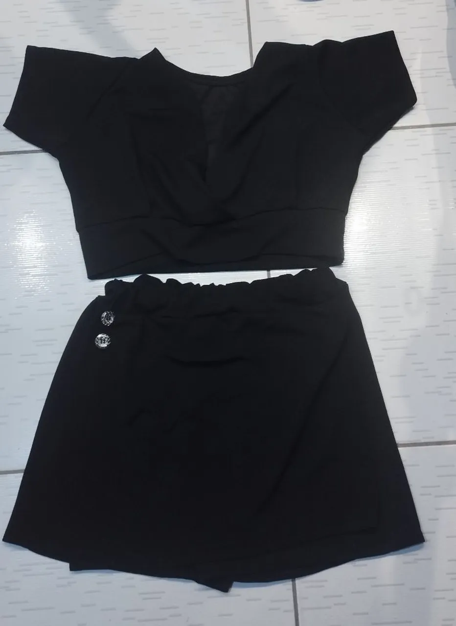 Conjunto cropped e short perfeito para um look moderno e estiloso. Confeccionado em tecido leve e confortável, ideal para diversas ocasiões.