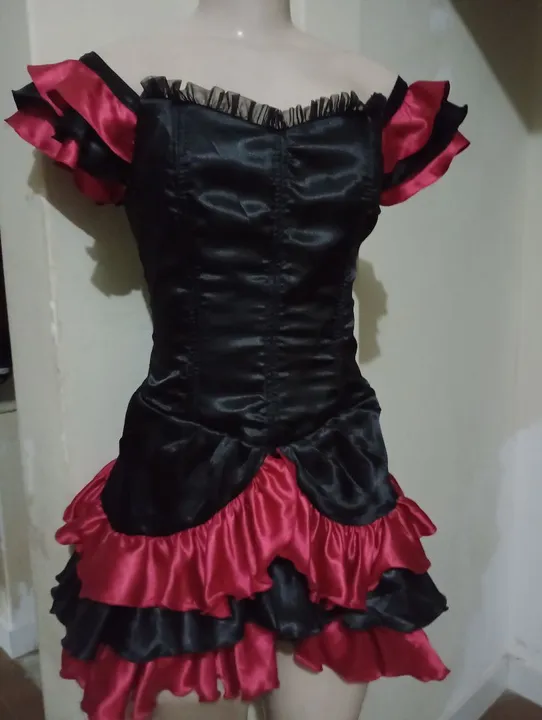 Vestido preto com babados vermelhos, ideal para festas e eventos. Ajuste perfeito, super charmoso e elegante.