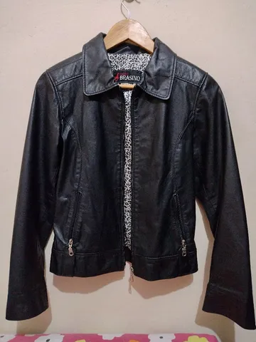 Jaqueta de couro legítimo, aproximadamente 3 anos de uso, sem avarias, tamanho M mas veste P