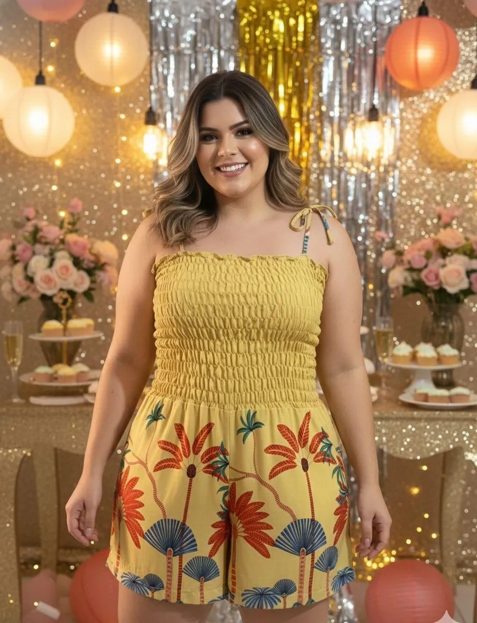 Apresentamos o macacão plus size perfeito para você! Confeccionado com tecido leve e confortável, este macacão é ideal para os dias de sol. Com um design moderno e estampa vibrante, você estará sempre estilosa e pronta para qualquer ocasião. Adquira já o seu e arrase!