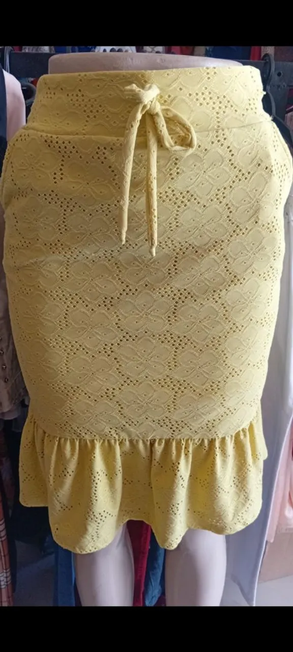 Linda saia feminina amarela, perfeita para um look estiloso e confortável. Seu design único e cor vibrante garantem que você se destaque em qualquer ocasião.