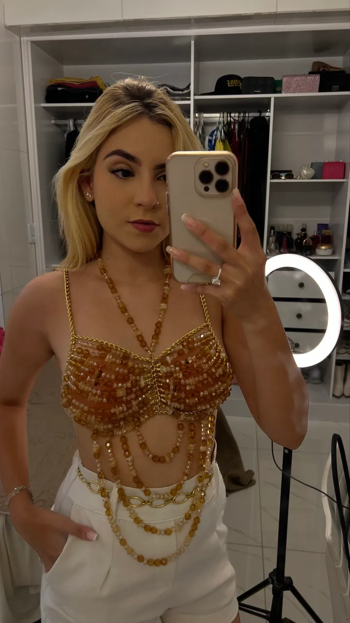 Top de miçanga modelo âmbar
