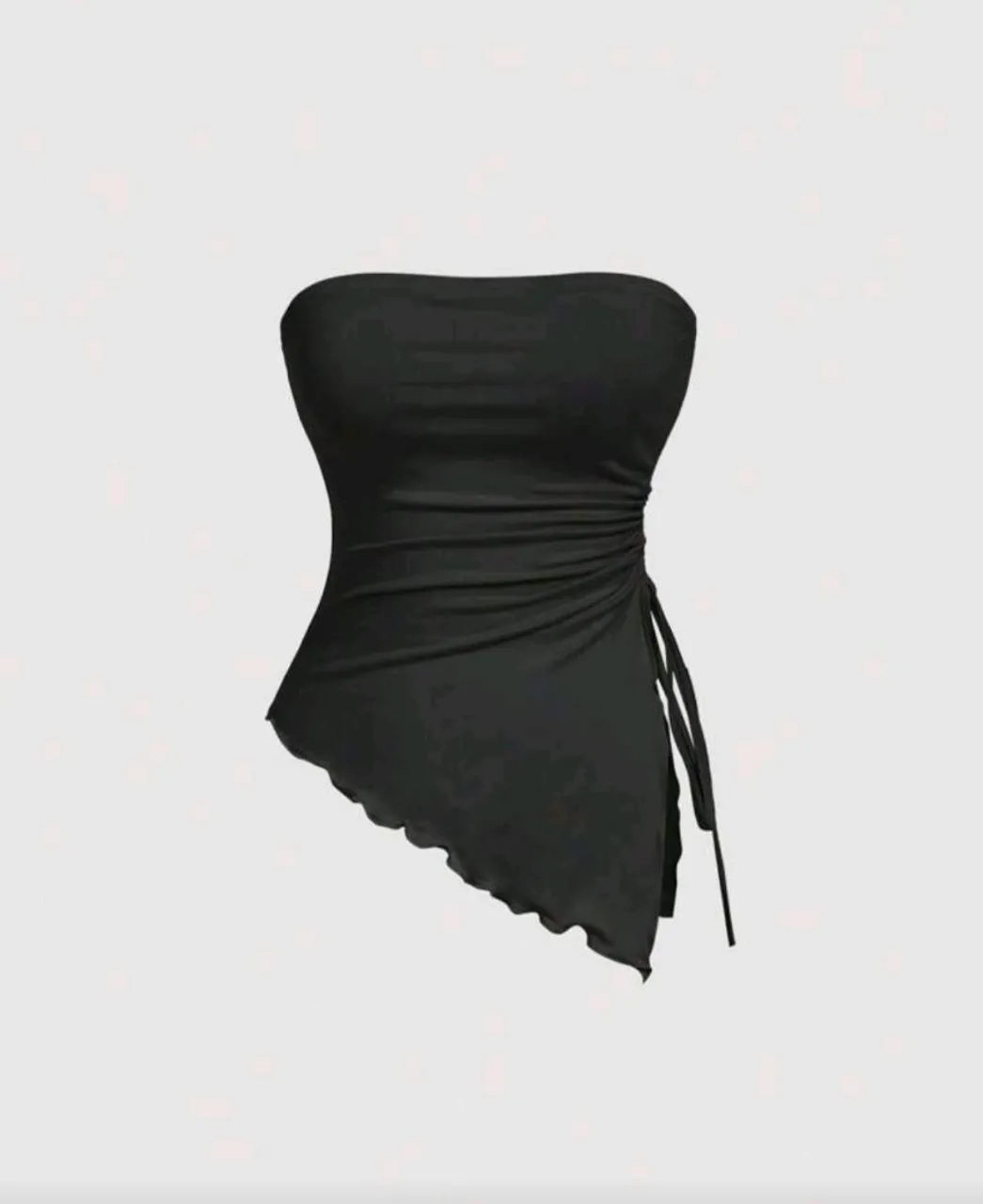 Top feminino tubular em tecido leve, moderno e estiloso, ideal para looks casuais, festivais, shows e produções ousadas para o verão. Modelo ajustado ao corpo, com design assimétrico que valoriza a silhueta.