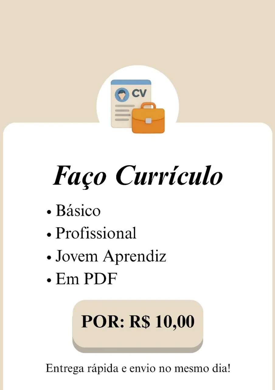 Currículos organizados e feitos sob medida para você. Envio no mesmo dia em pdf.