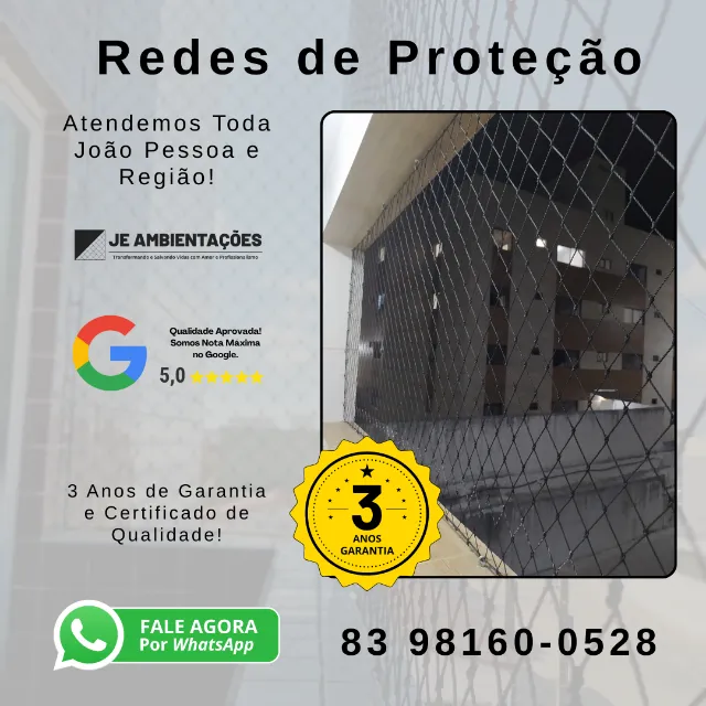 Redes de Proteção - 3 Anos de Garantia, Atendemos em João Pessoa e Região!